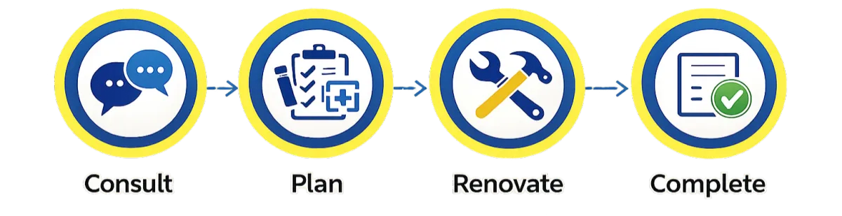 Remodeling doesn’t have to be overwhelming. From the initial consultation to the final walkthrough, we manage every detail including planning, design, materials, permits, and construction. Our streamlined process keeps you informed, confident, and excited while we bring your vision to life.